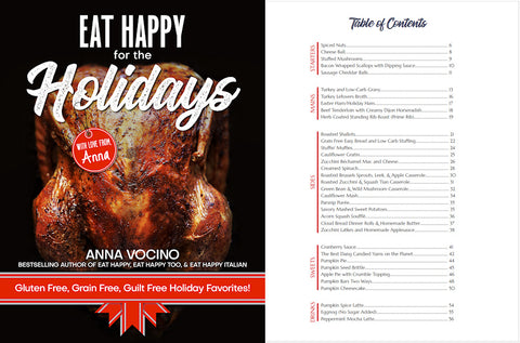 Eat Happy for the Holidays features dozens of delicious low-carb recipes that will bring the flavor to any holiday function. Each recipe is easy to make and ready to please everyone around the table. Starters, Mains, Sides, Sweets, and Drinks are all represented!